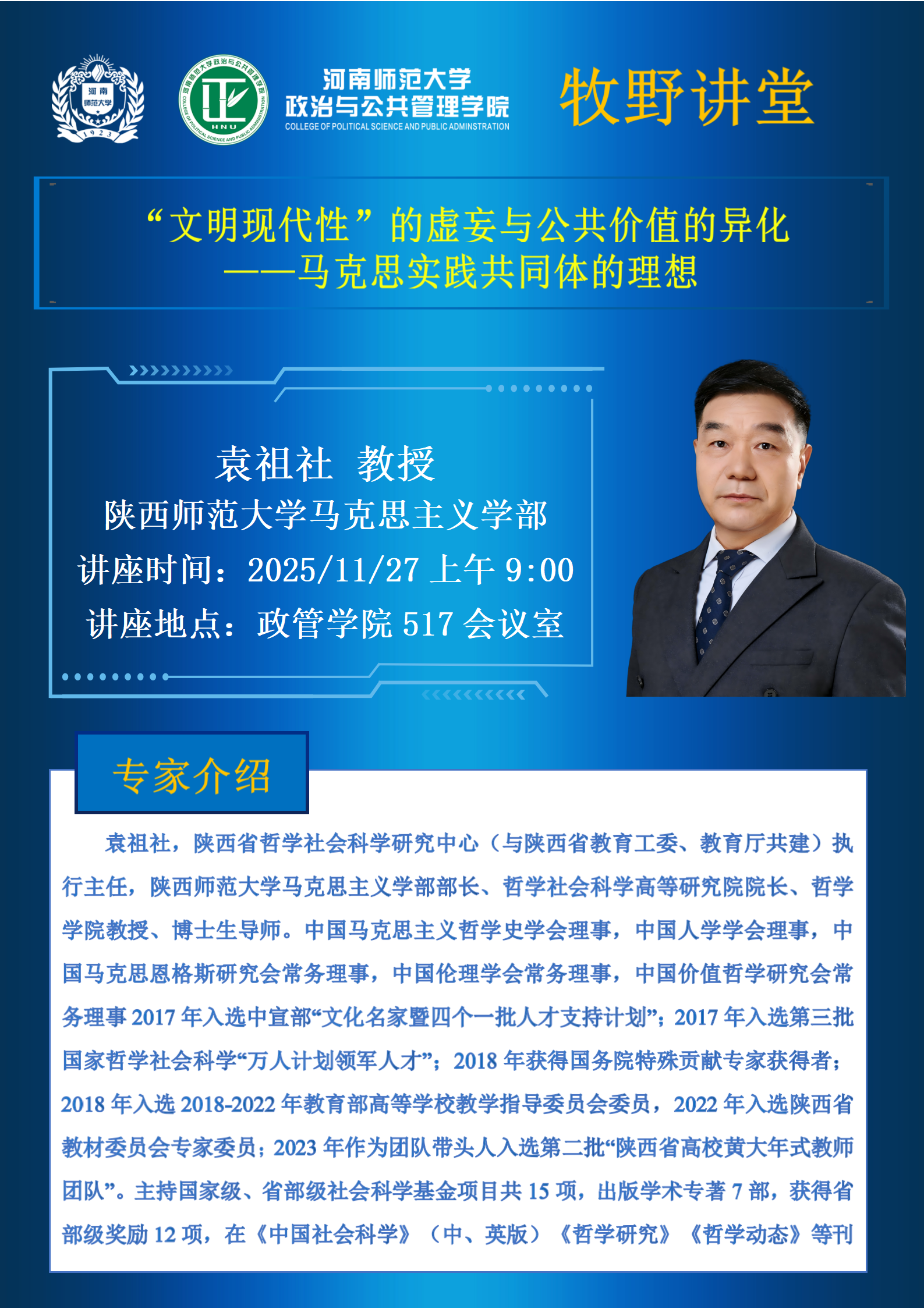 陕西师范大学袁祖社教授将应邀做客“牧野讲堂”