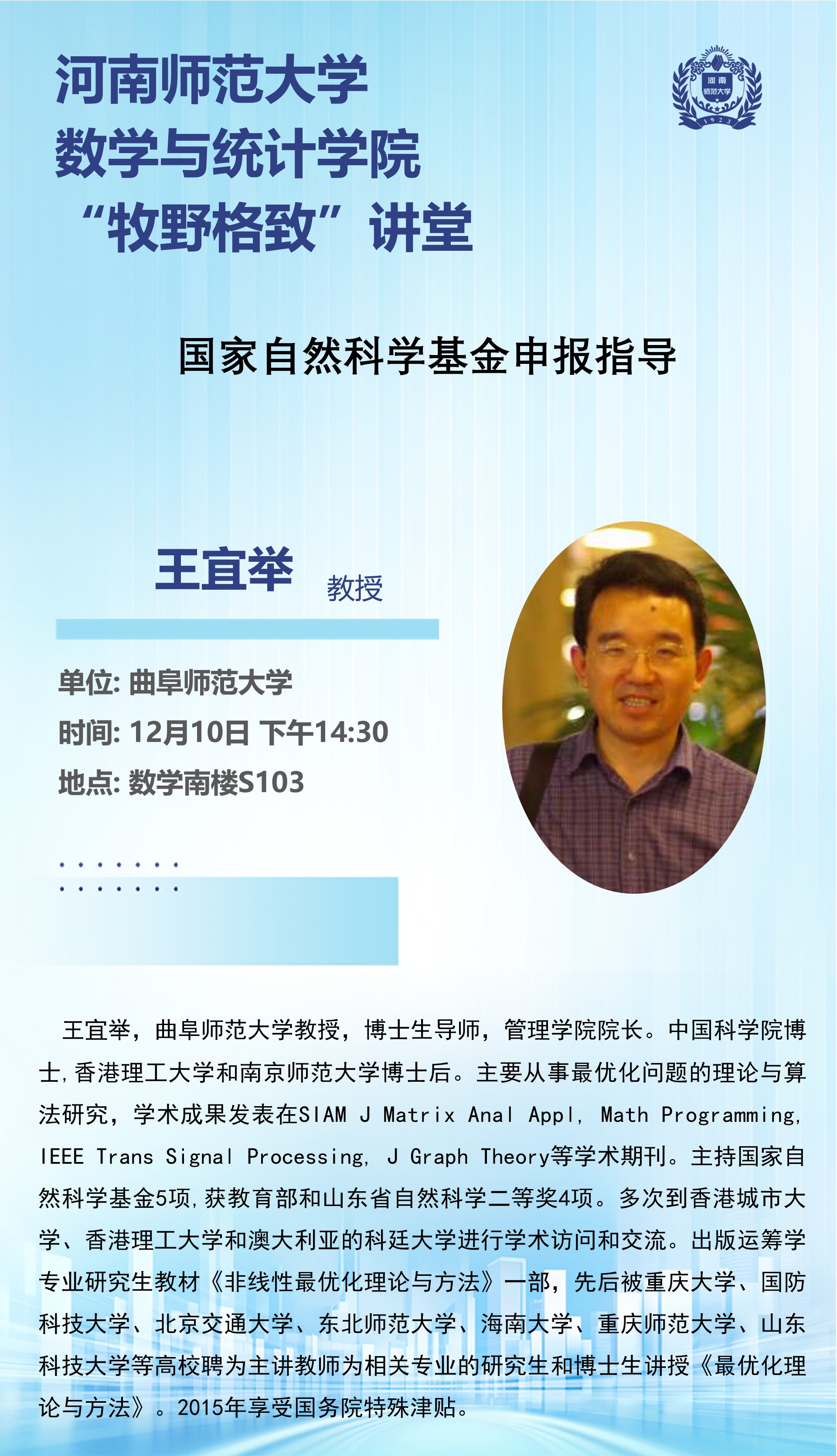 曲阜师范大学王宜举教授将应邀做客“牧野格致”讲堂