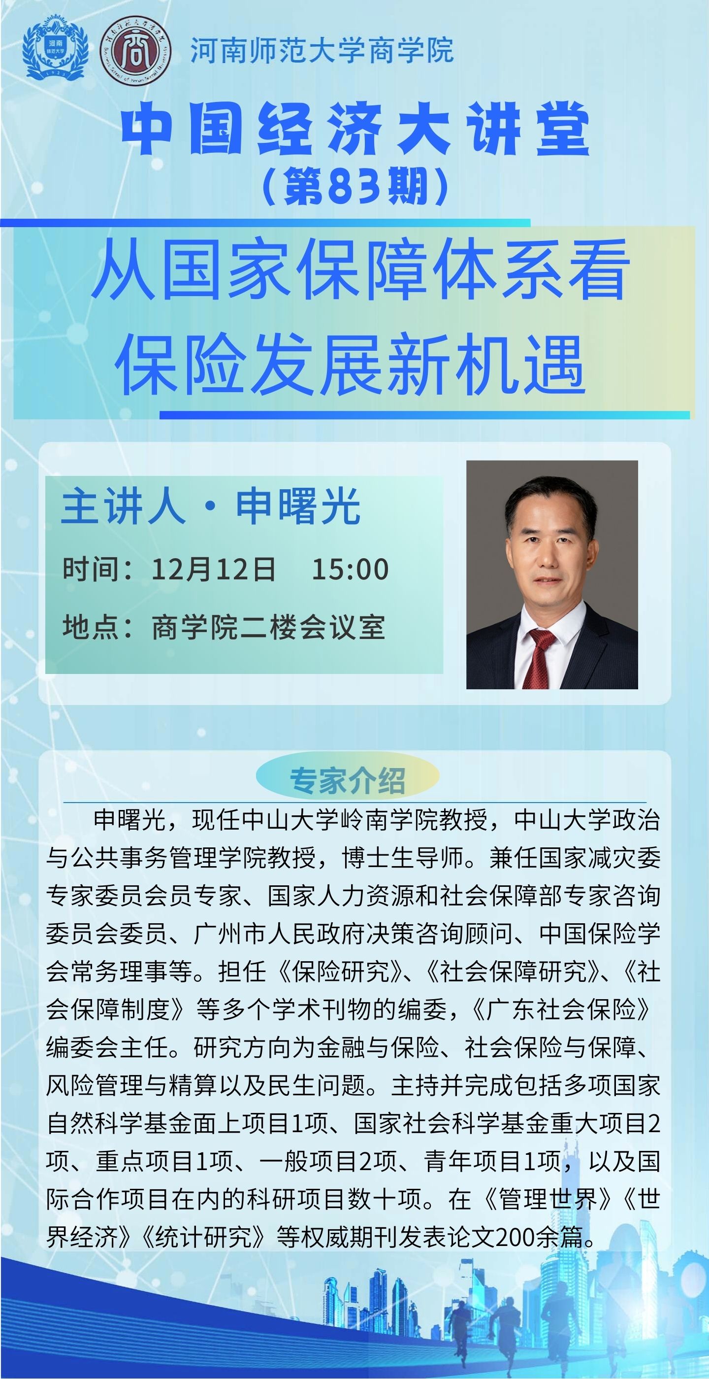 中山大学申曙光教授将应邀做客“中国经济大讲堂”