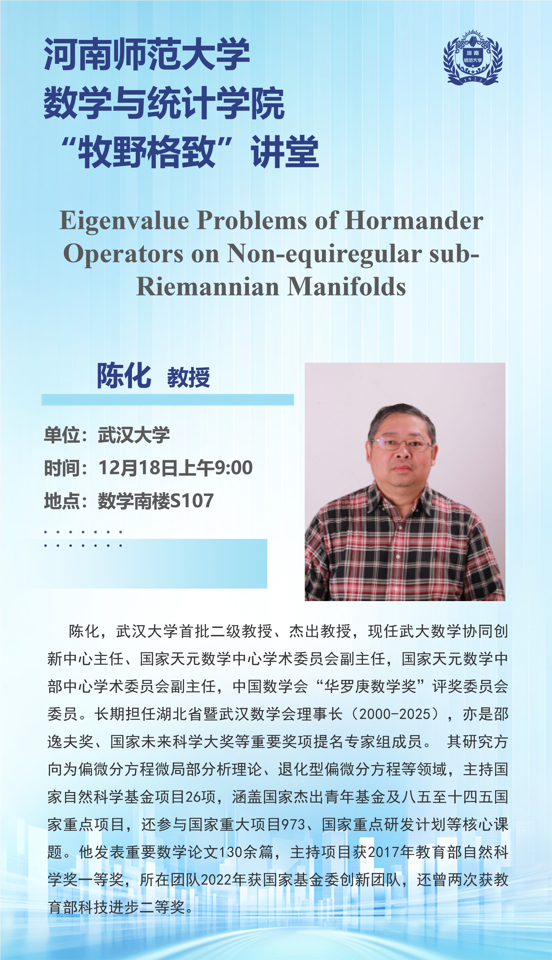 武汉大学陈化教授将应邀做客“牧野格致”讲堂