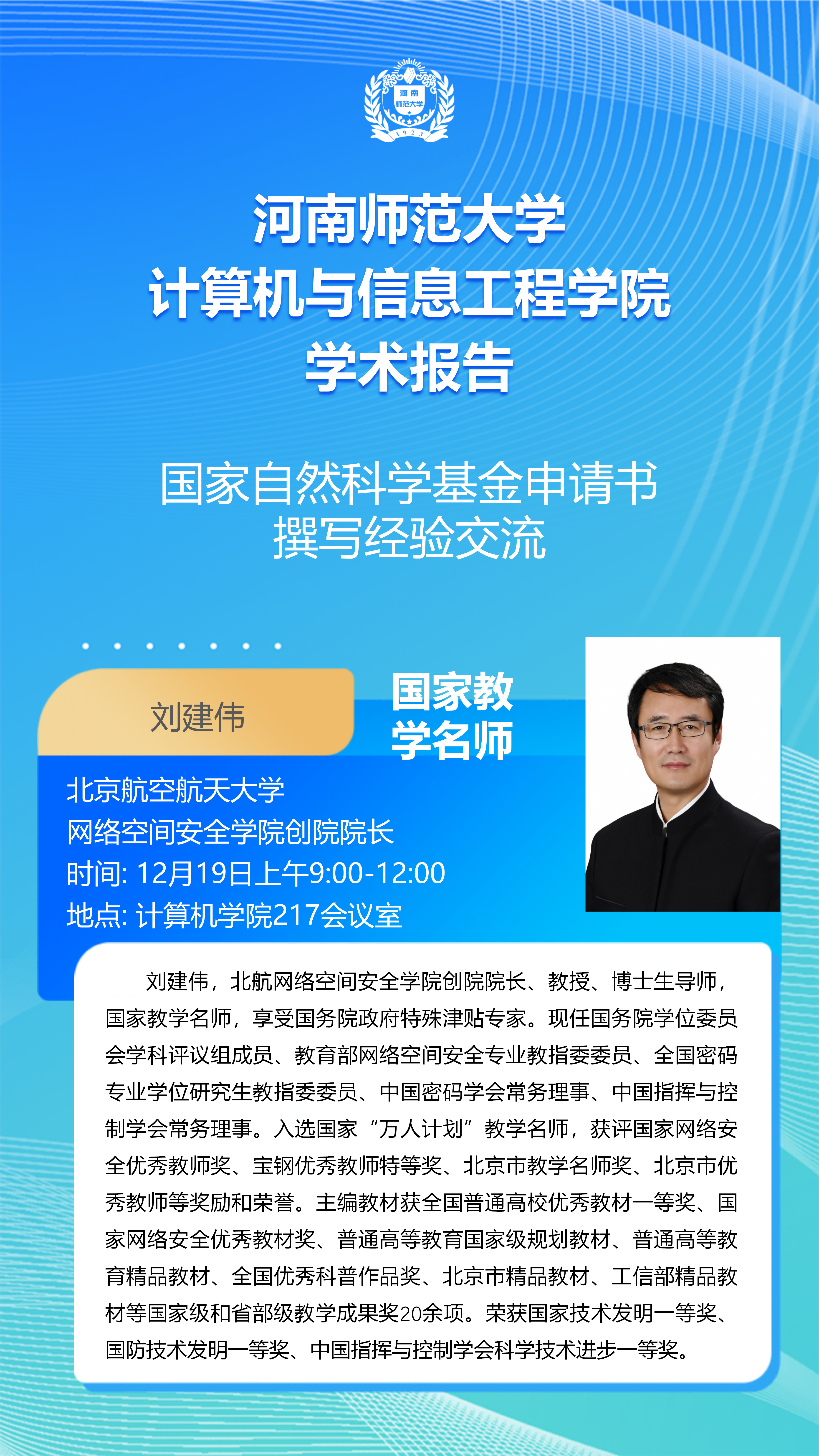 北京航空航天大学刘建伟教授将应邀做客“智能科学”讲坛