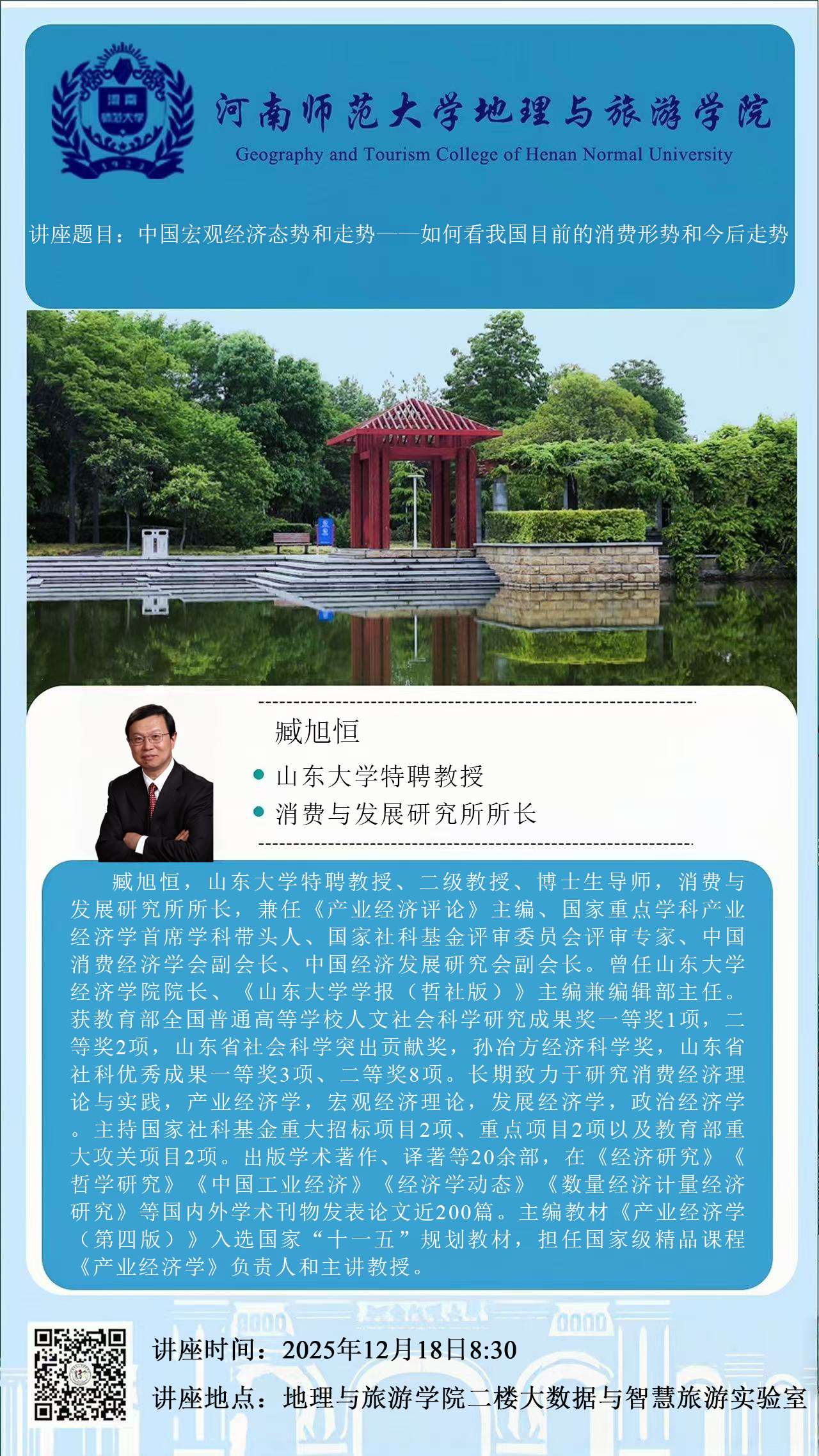 山东大学臧旭恒教授将应邀做客“高端专家行知讲堂”