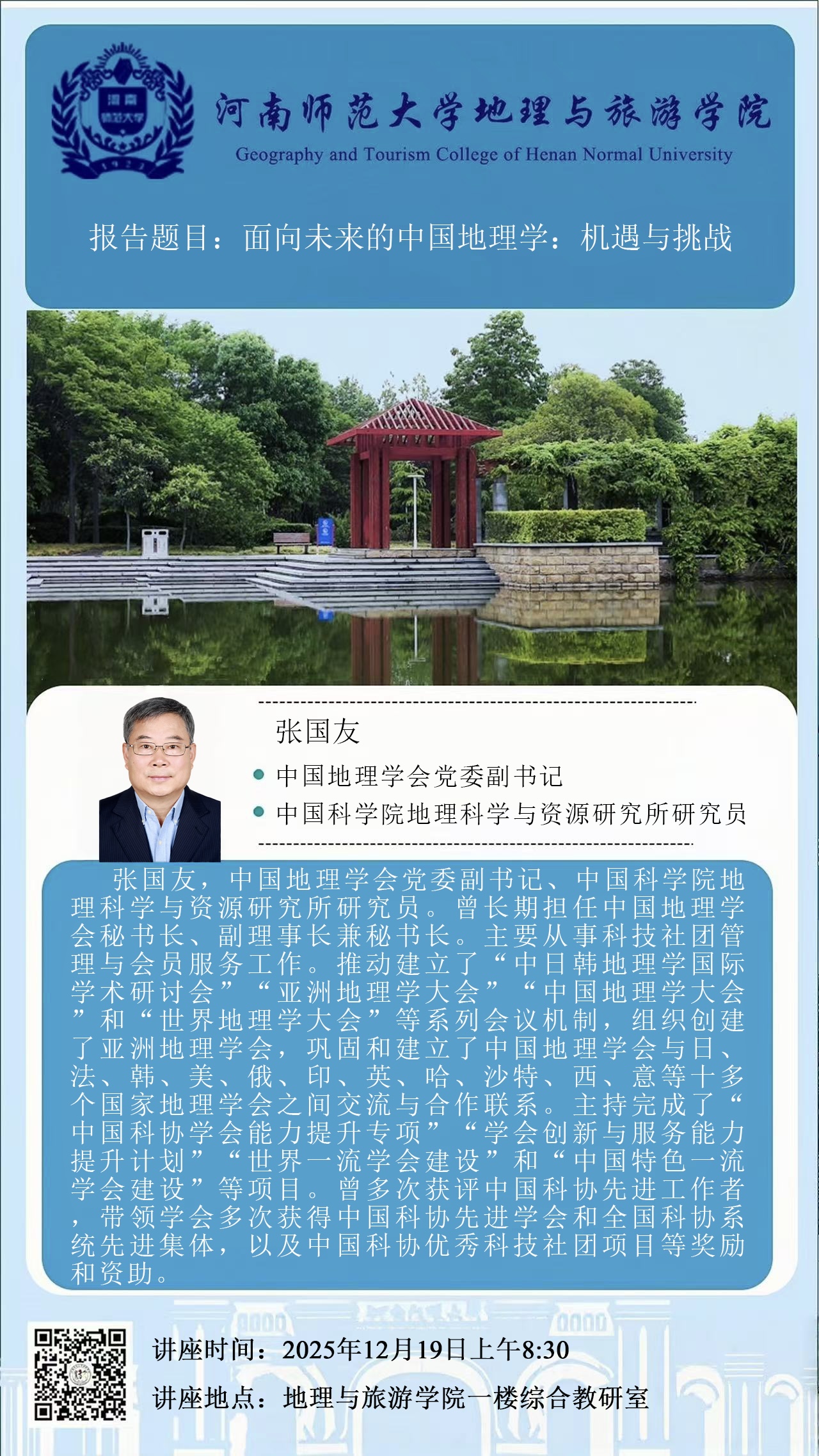 中国科学院地理科学与资源研究所张国友研究员将应邀做客“高端专家行知讲堂”