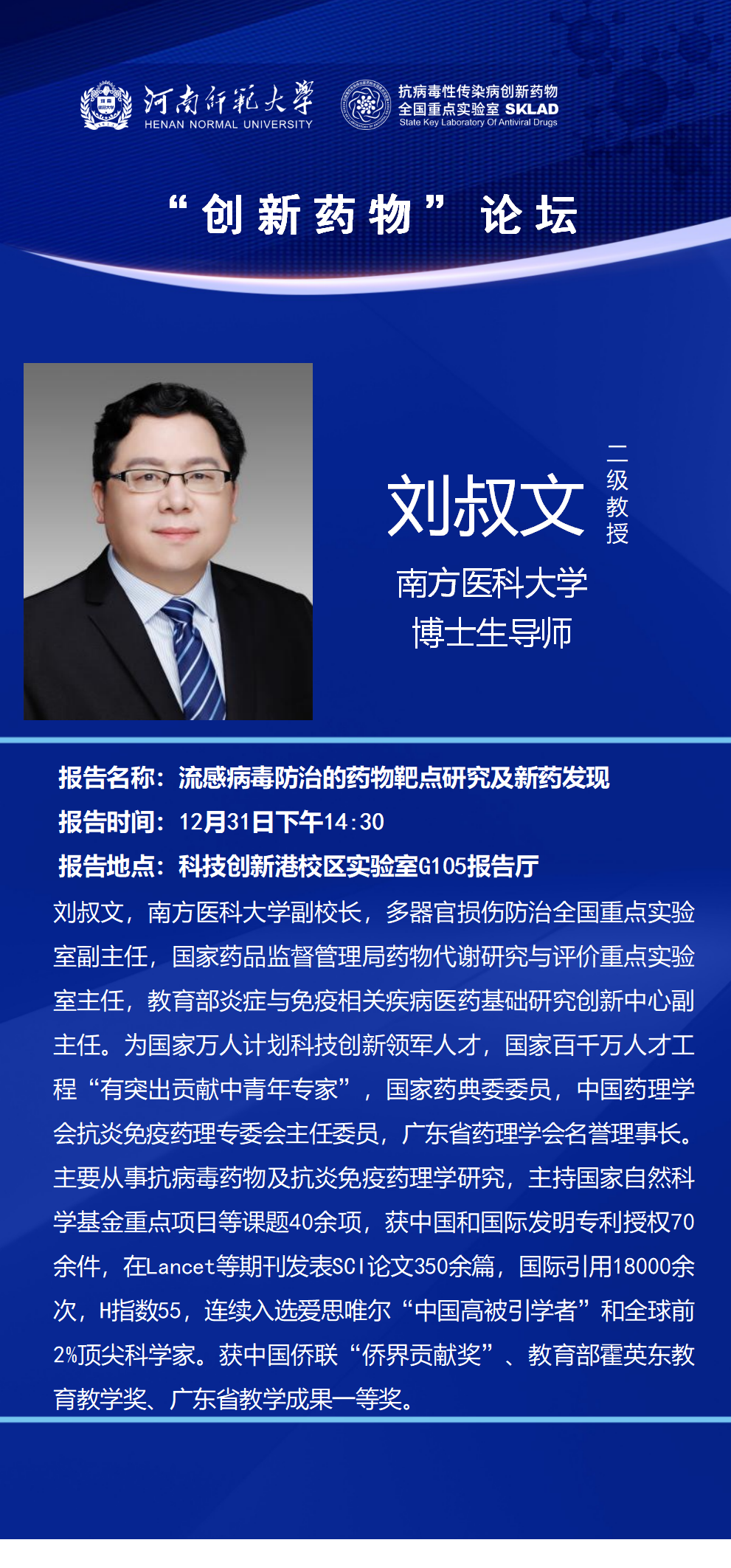 南方医科大学刘叔文教授将应邀做客“创新药物”论坛
