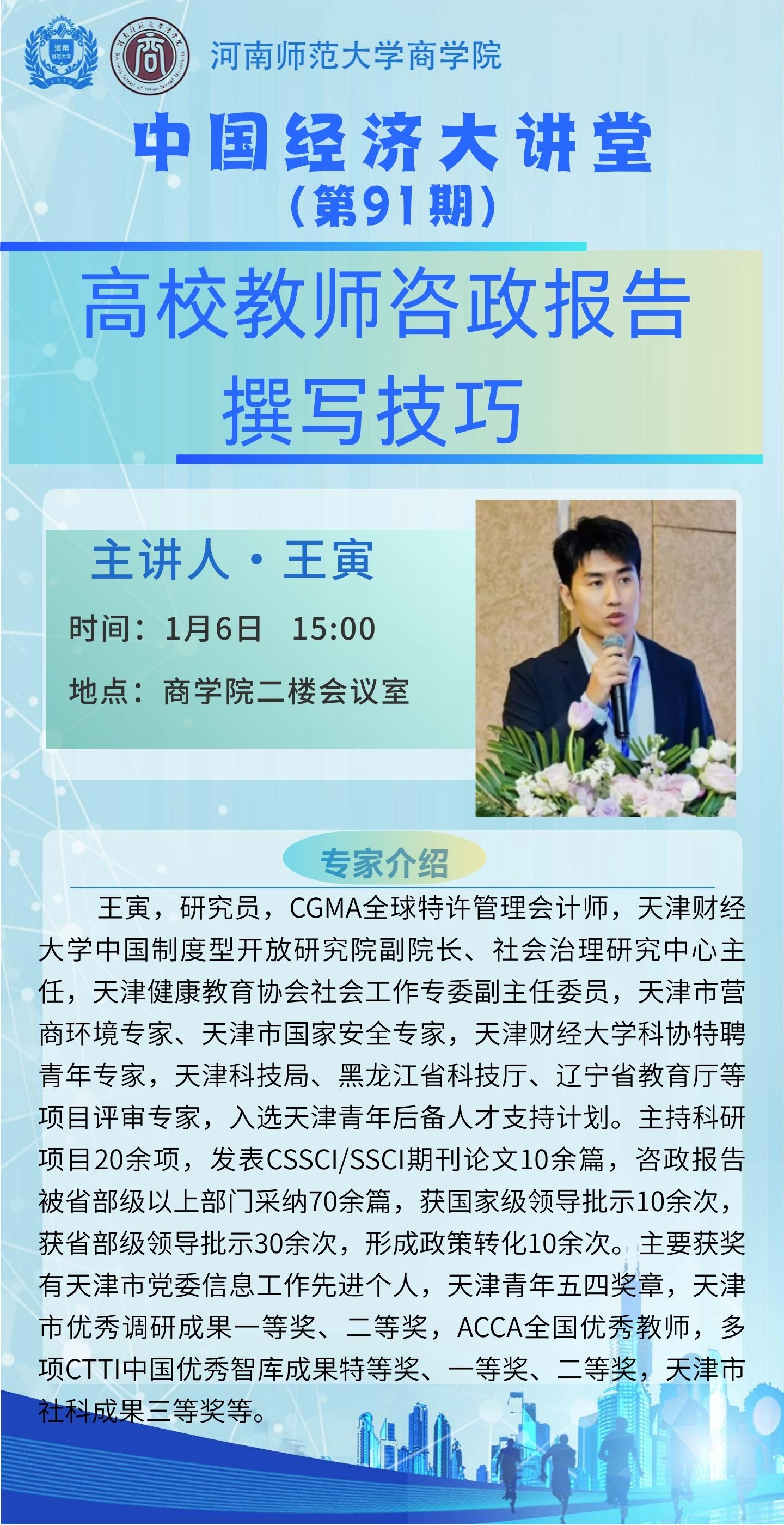 天津财经大学王寅研究员将应邀做客“中国经济大讲堂”