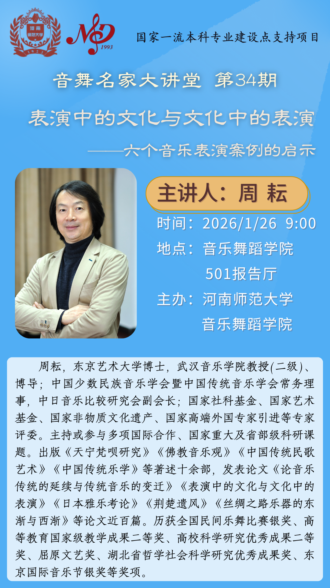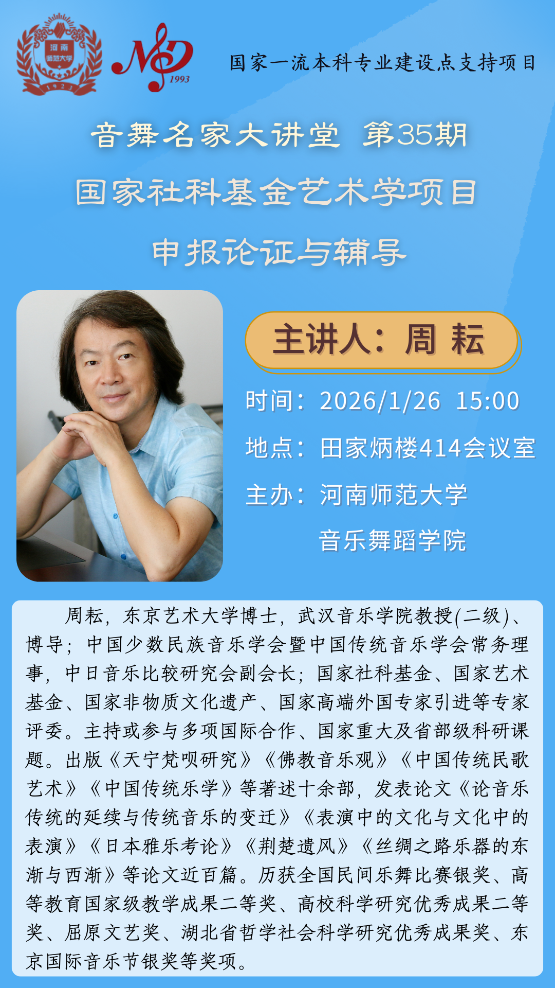 武汉音乐学院周耘教授将应邀做客“音舞名家大讲堂”