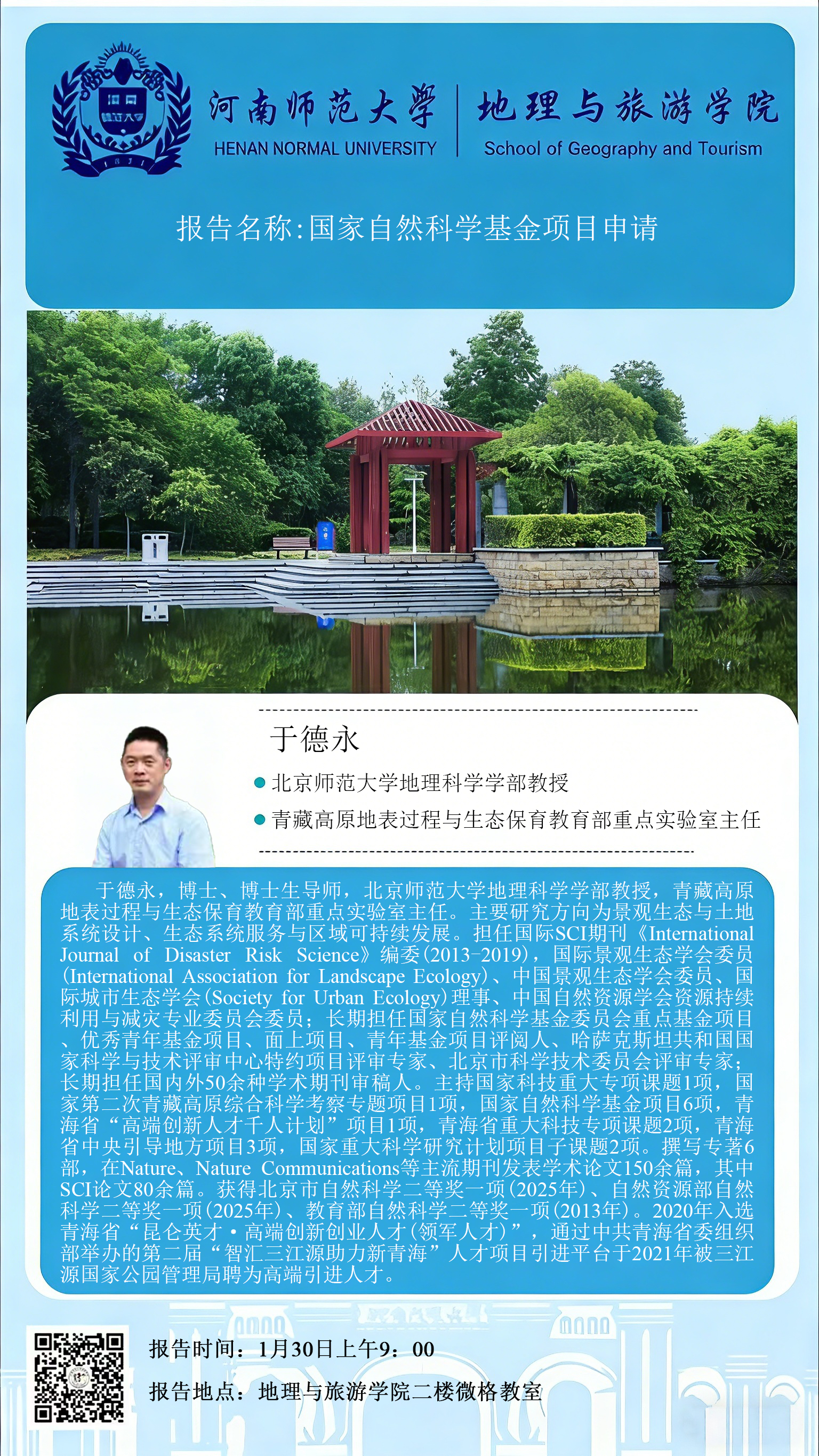北京师范大学于德永教授将应邀做客“高端专家行知讲堂”