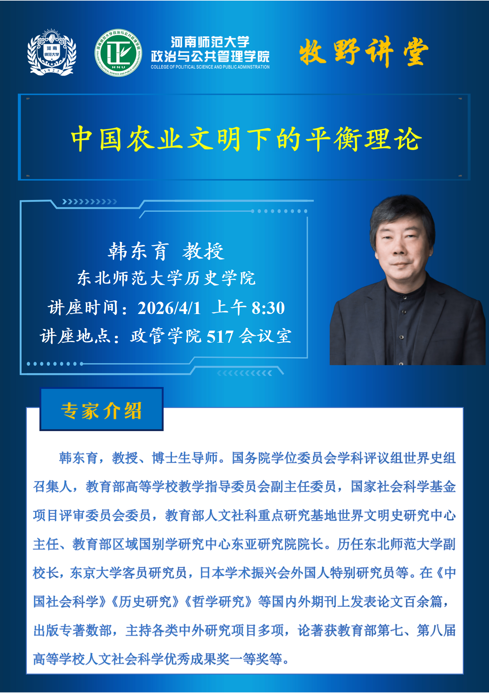 东北师范大学韩东育教授将应邀做客“牧野讲堂”