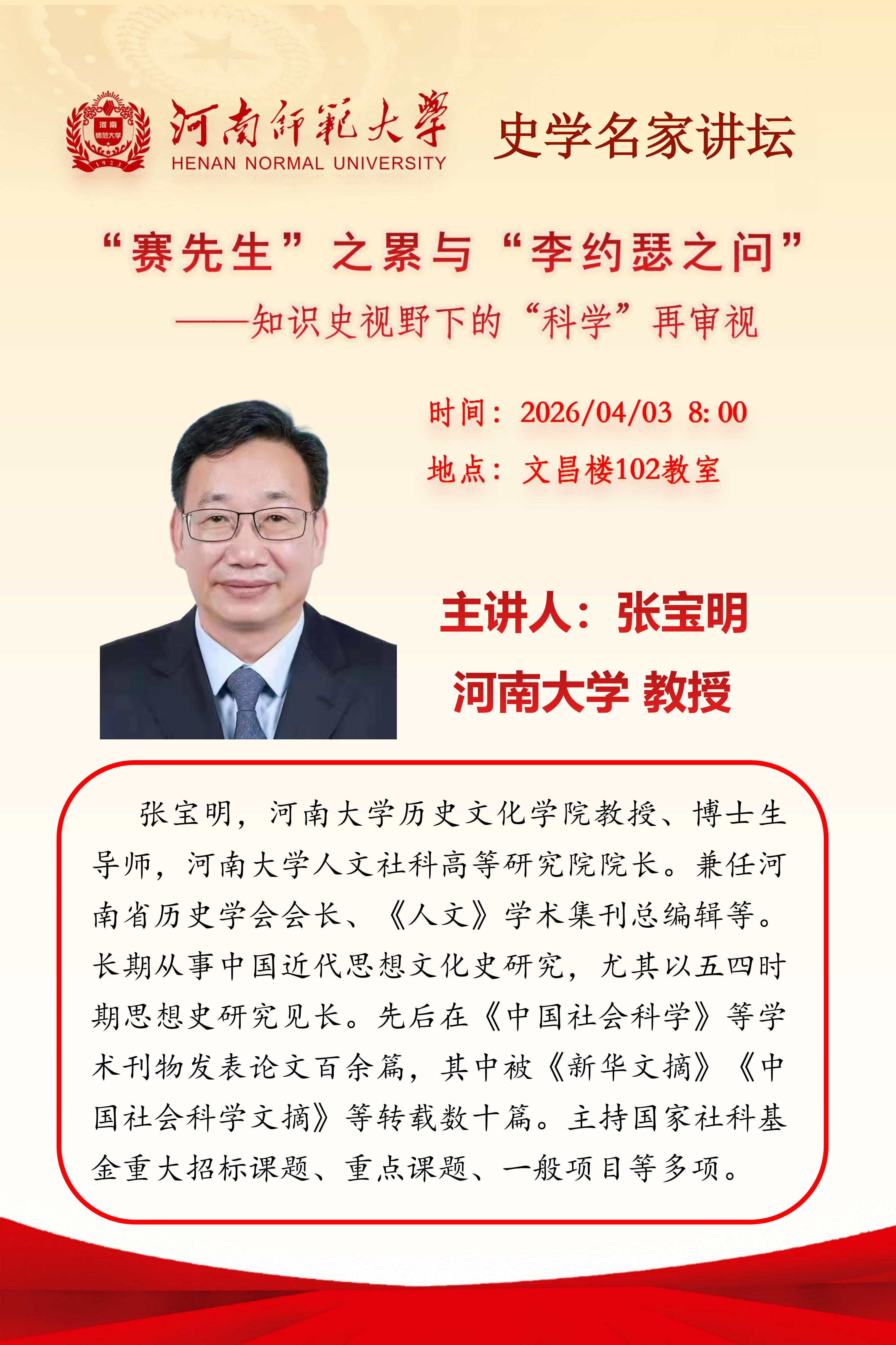 河南大学张宝明教授将应邀做客“史学名家讲坛”