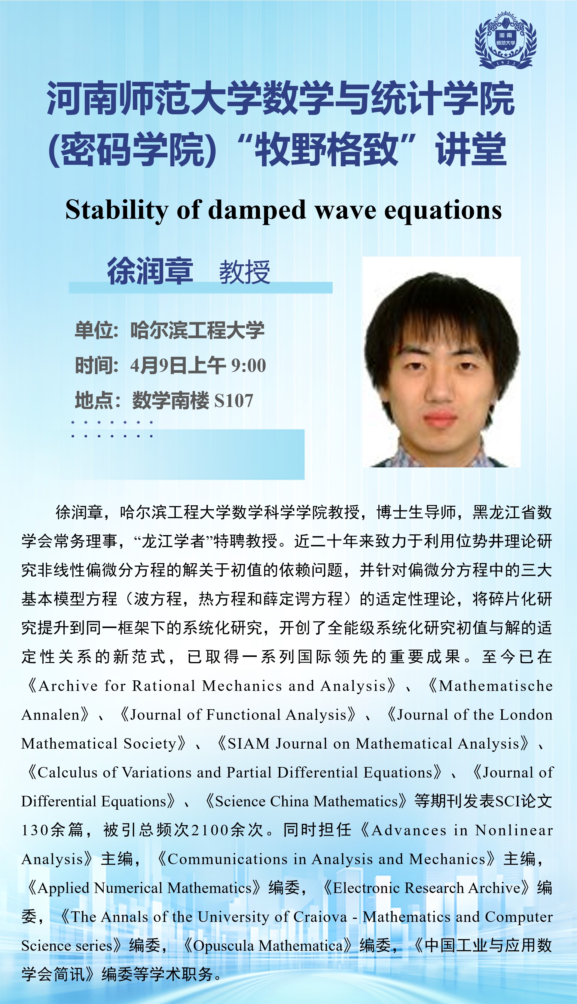 哈尔滨工程大学徐润章教授将应邀做客“牧野格致”讲堂