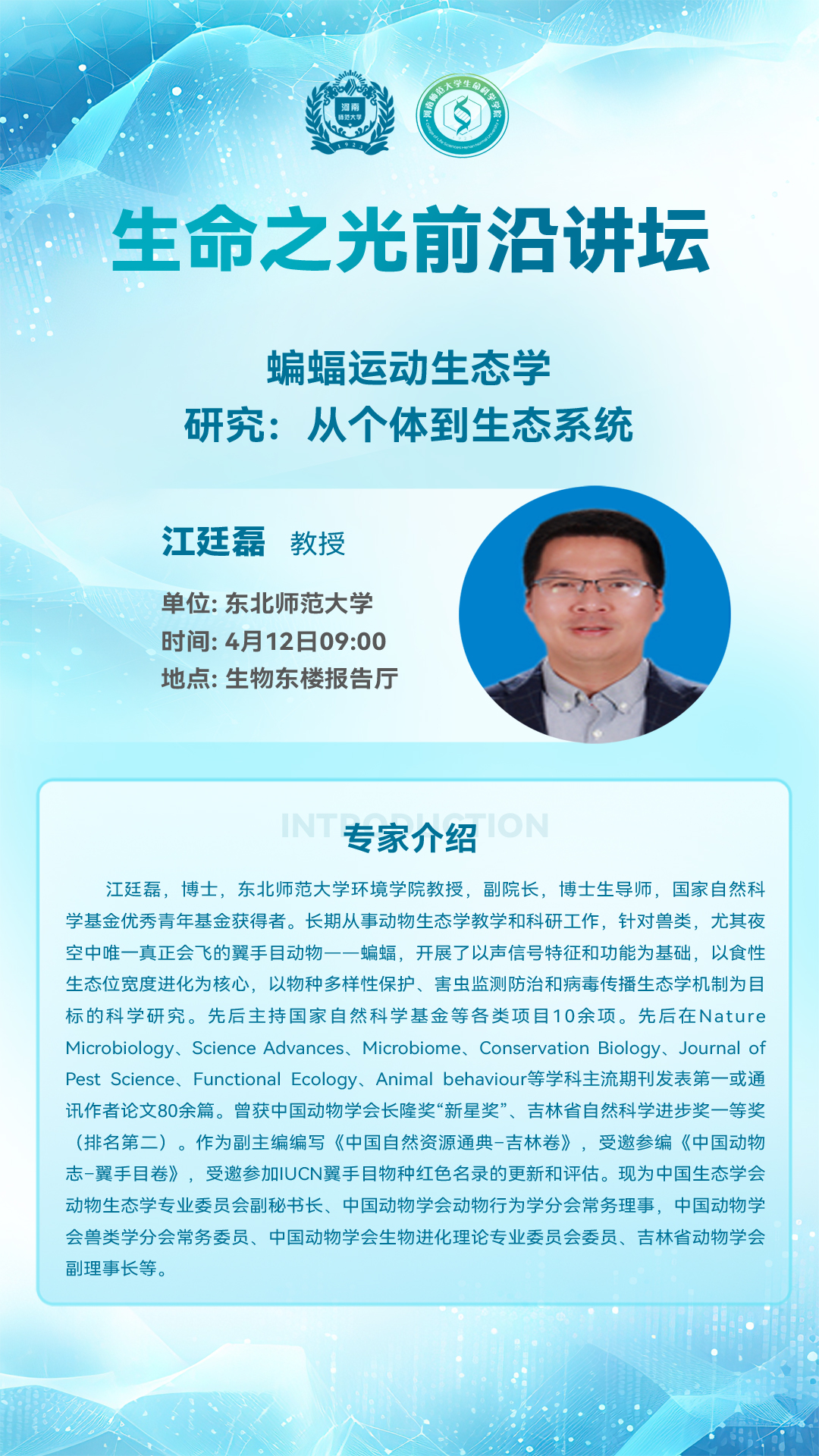 东北师范大学江廷磊教授将应邀做客“生命之光”前沿讲坛