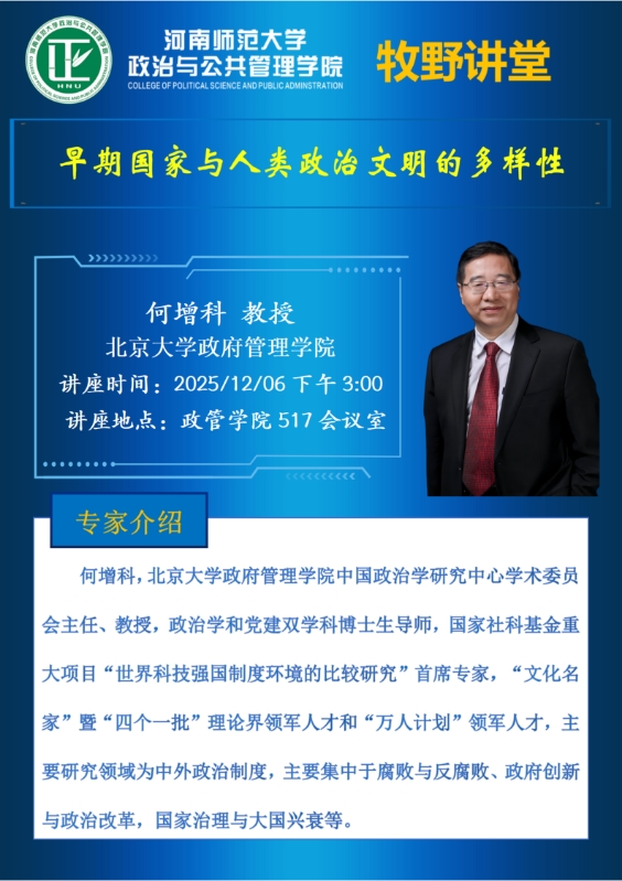 北京大学何增科教授将应邀做客“牧野讲堂”