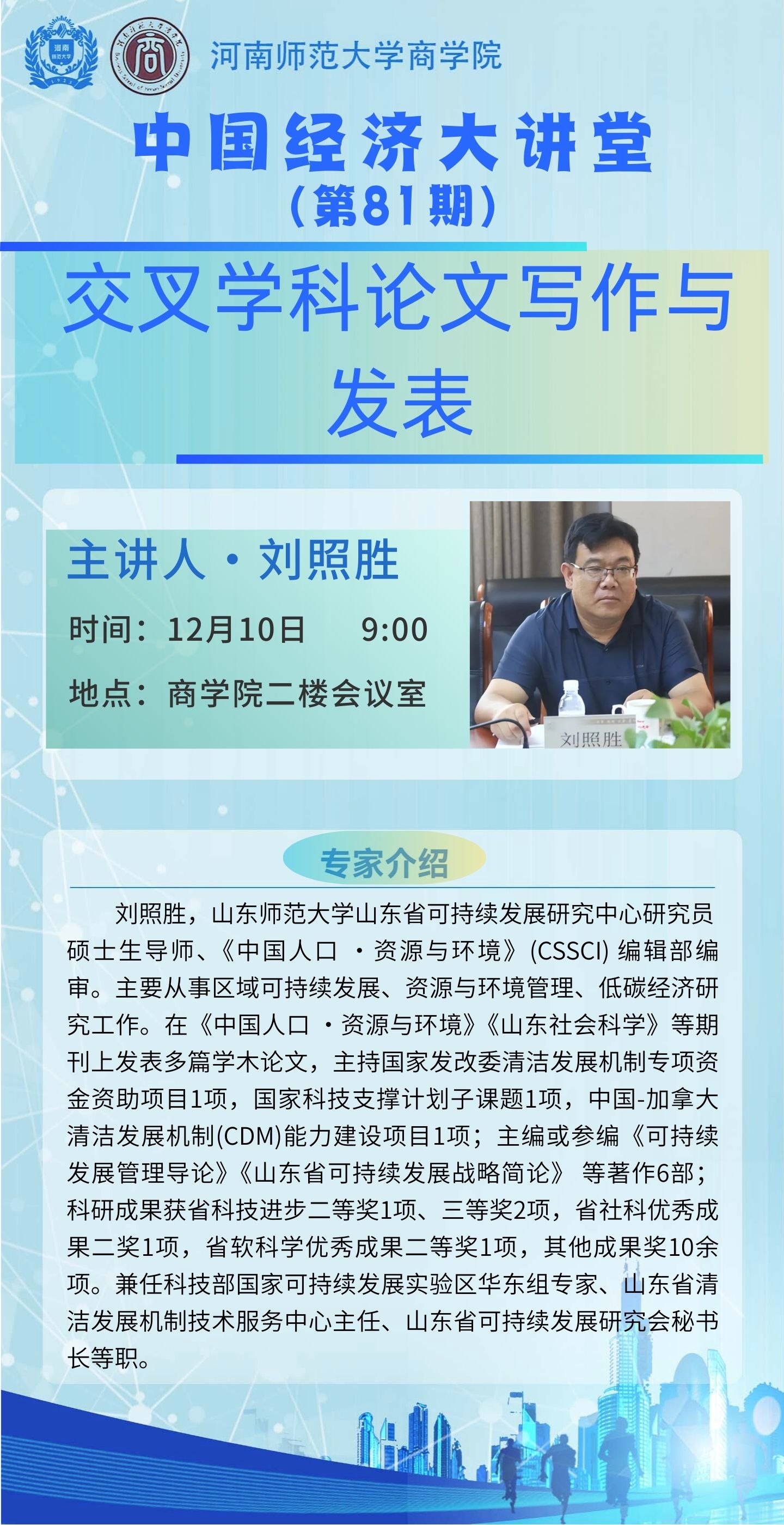 《中国人口·资源与环境》编审刘照胜将应邀做客“中国经济大讲堂”