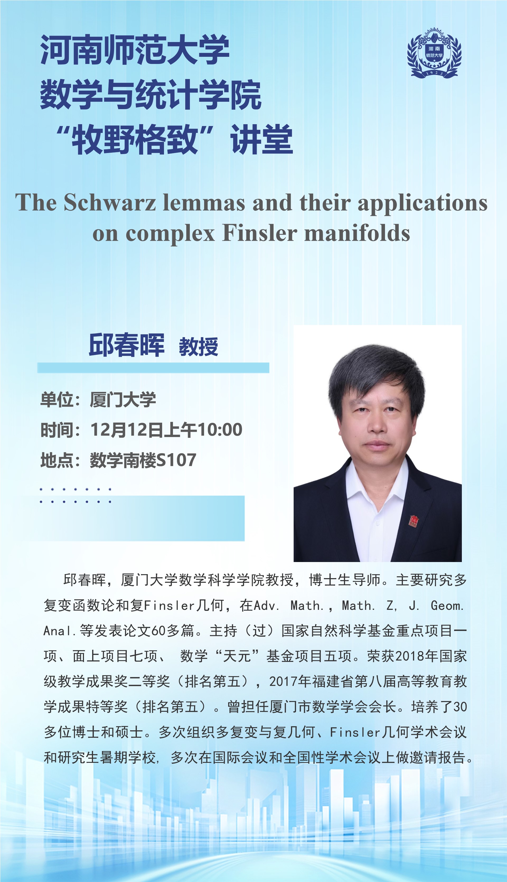 厦门大学邱春晖教授将应邀做客“牧野格致”讲堂