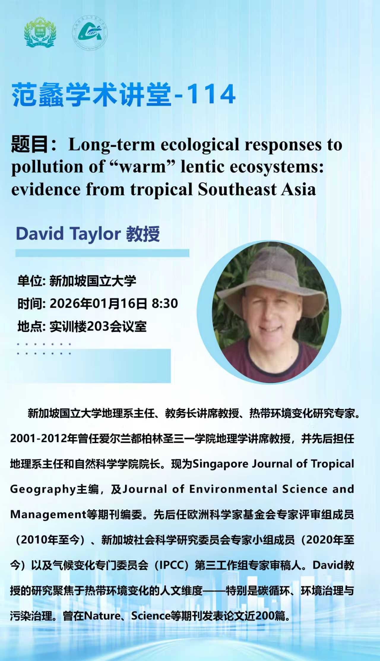 新加坡国立大学David Taylor教授将应邀做客“范蠡学术讲堂”