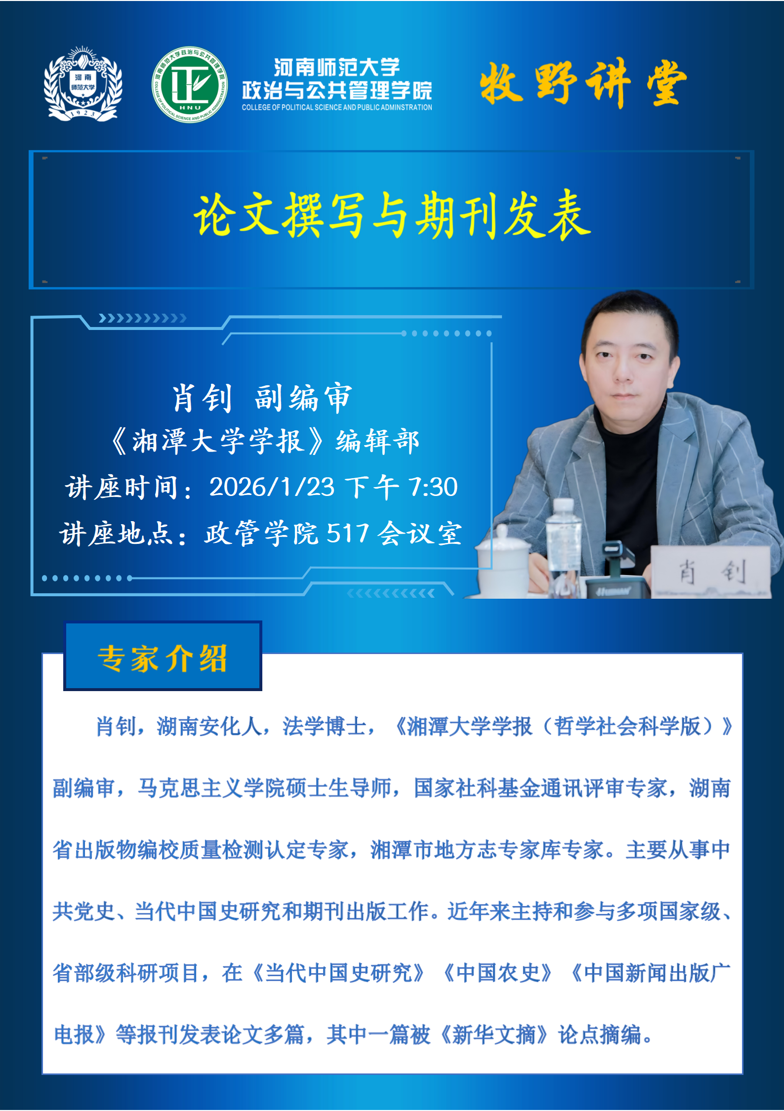 湘潭大学肖钊副编审将应邀做客“牧野讲堂”