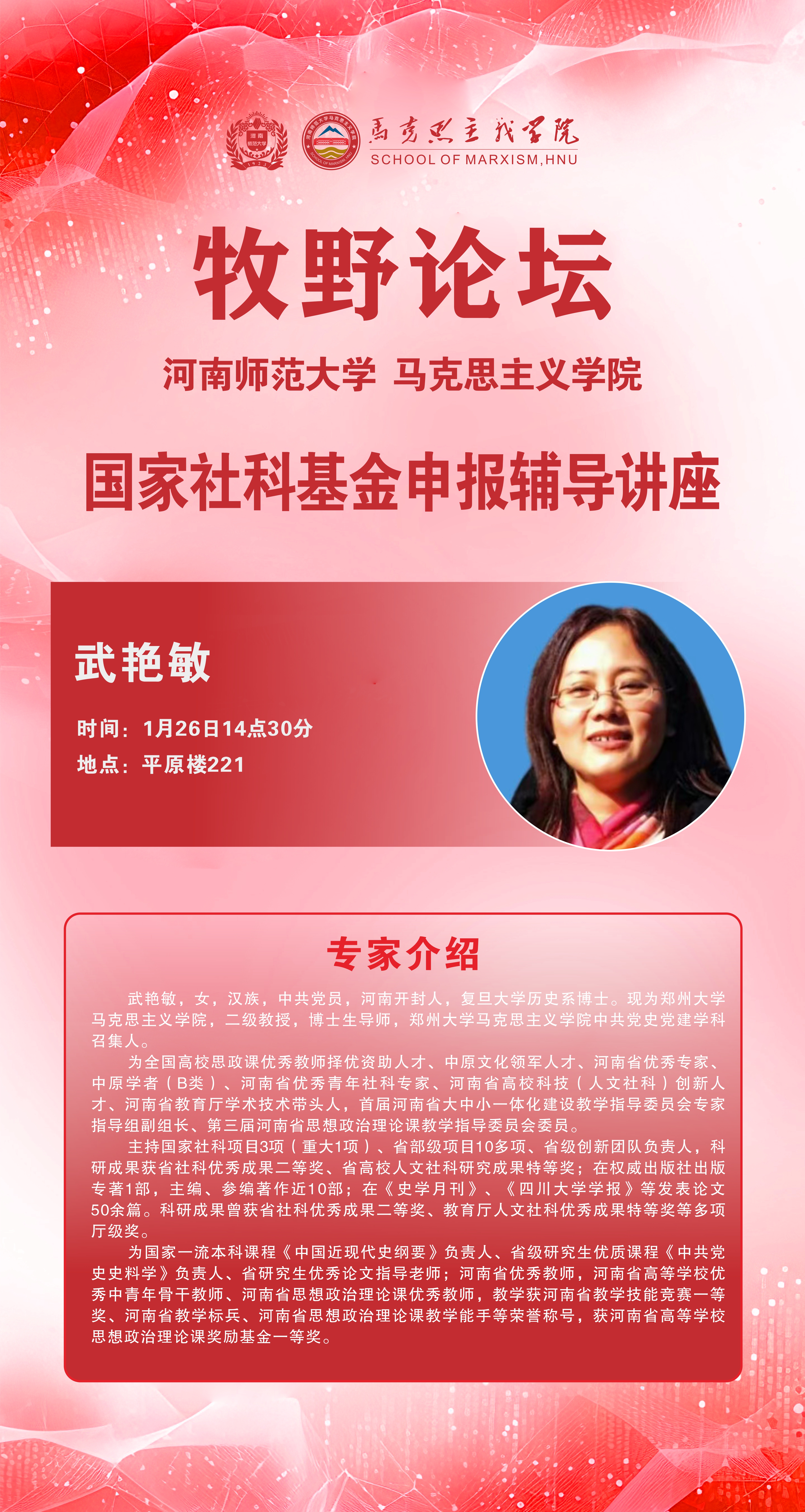郑州大学武艳敏教授将应邀做客“牧野论坛”