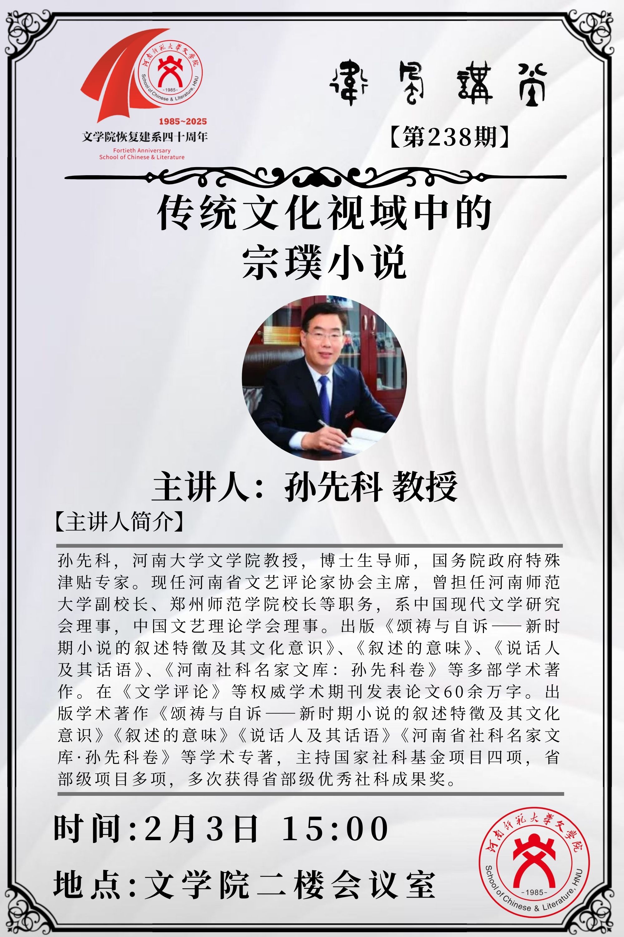 河南大学孙先科教授将应邀做客文学院“卫风讲堂”