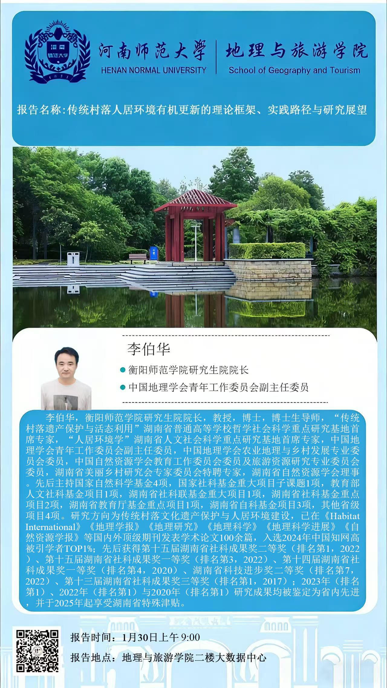 衡阳师范学院李伯华教授将应邀做客“高端专家行知讲堂”