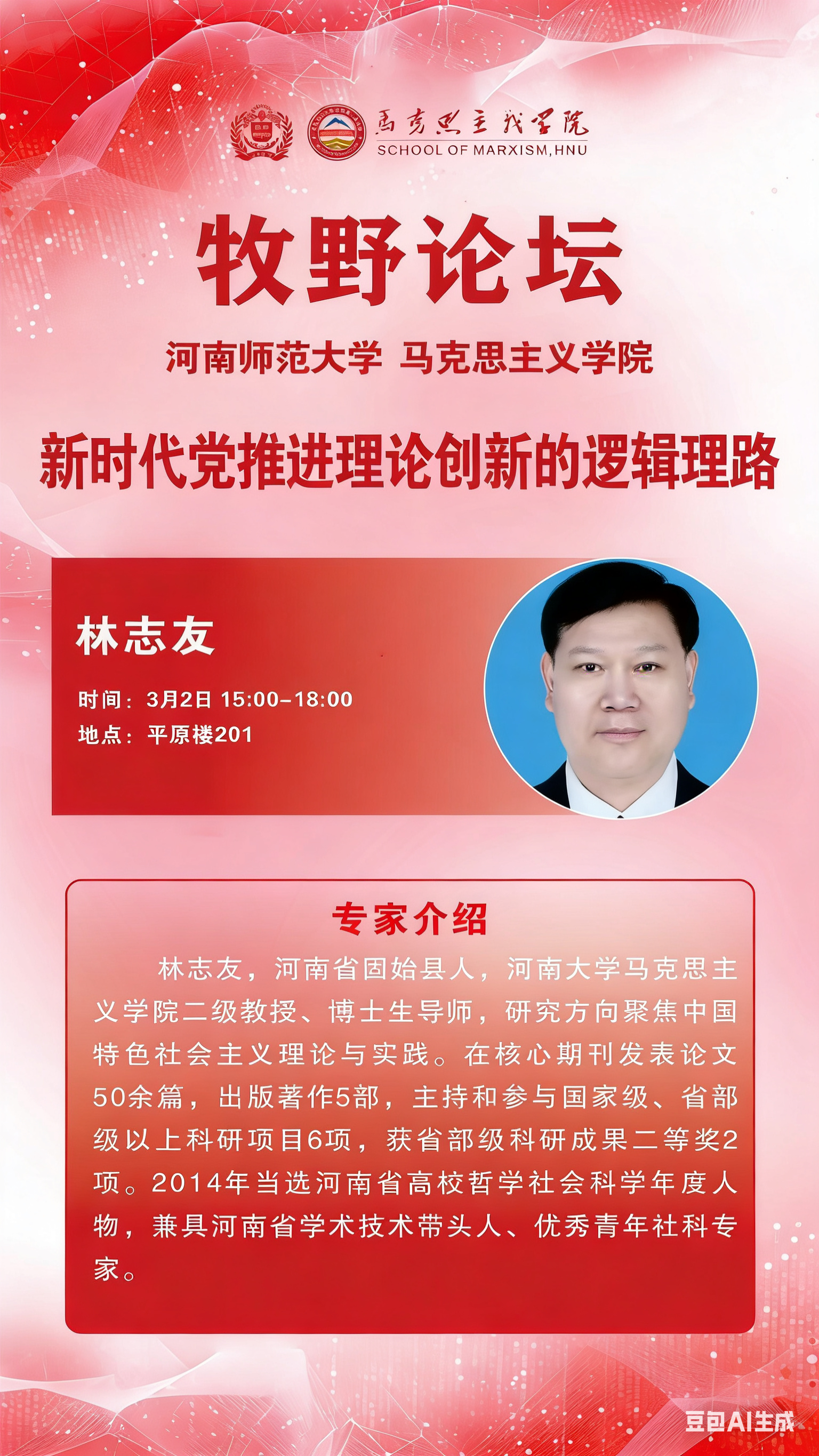 河南大学林志友教授将应邀做客“牧野论坛”