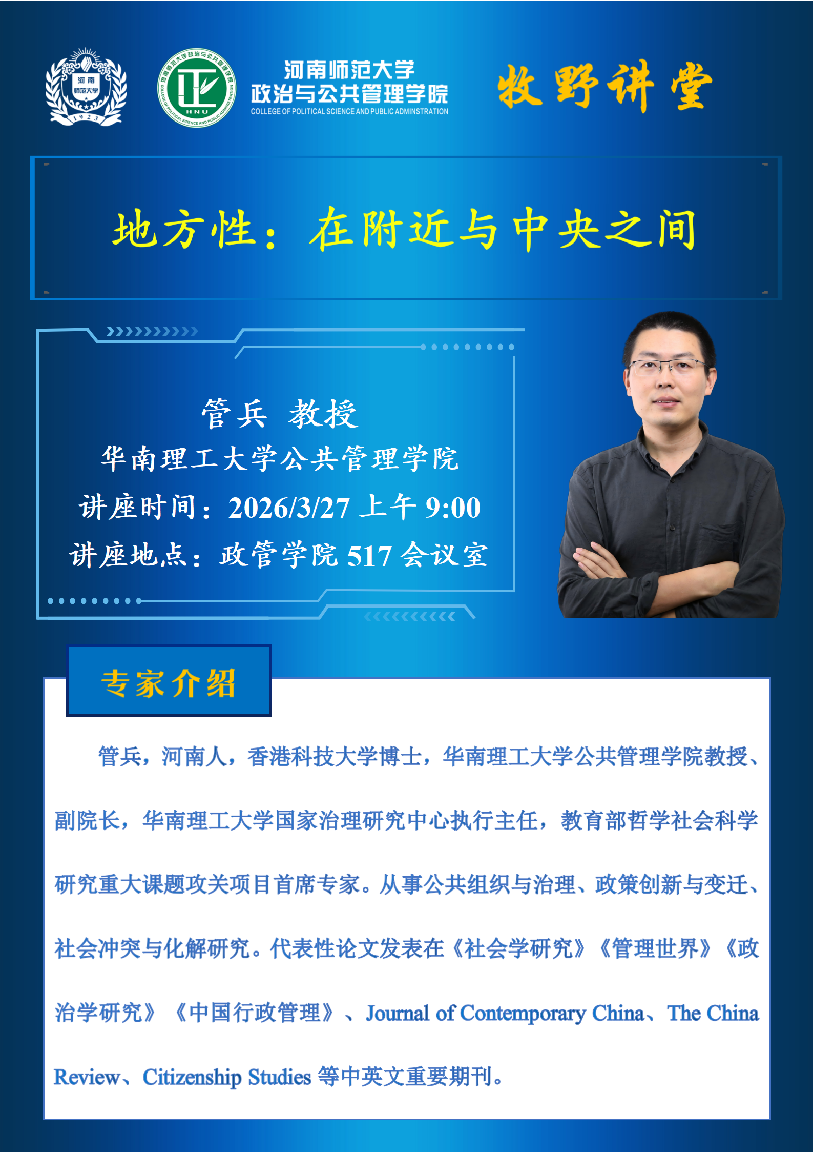华南理工大学管兵教授将应邀做客“牧野讲堂”
