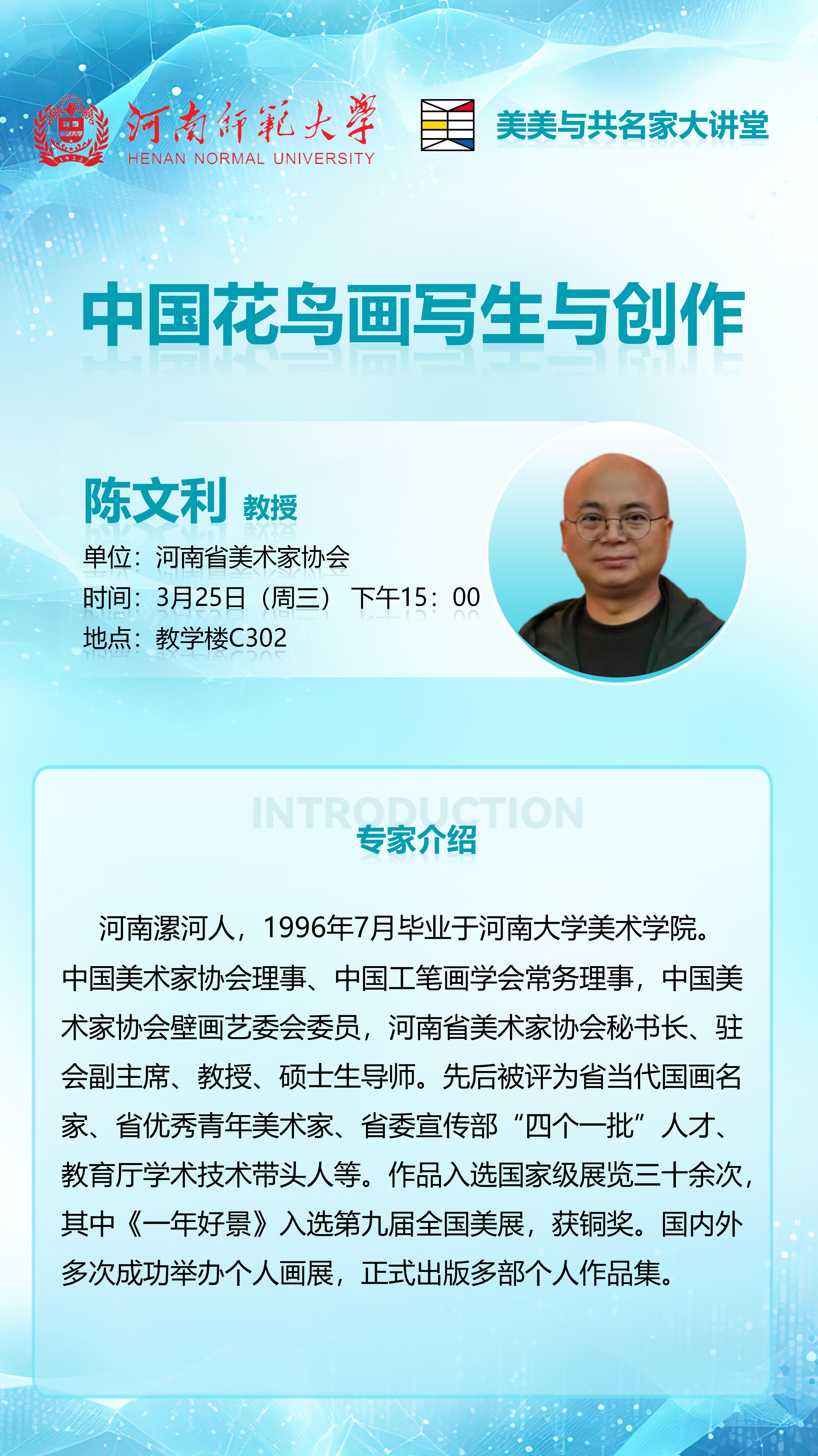 河南省美术家协会陈文利教授将应邀做客“美美与共”名家大讲堂