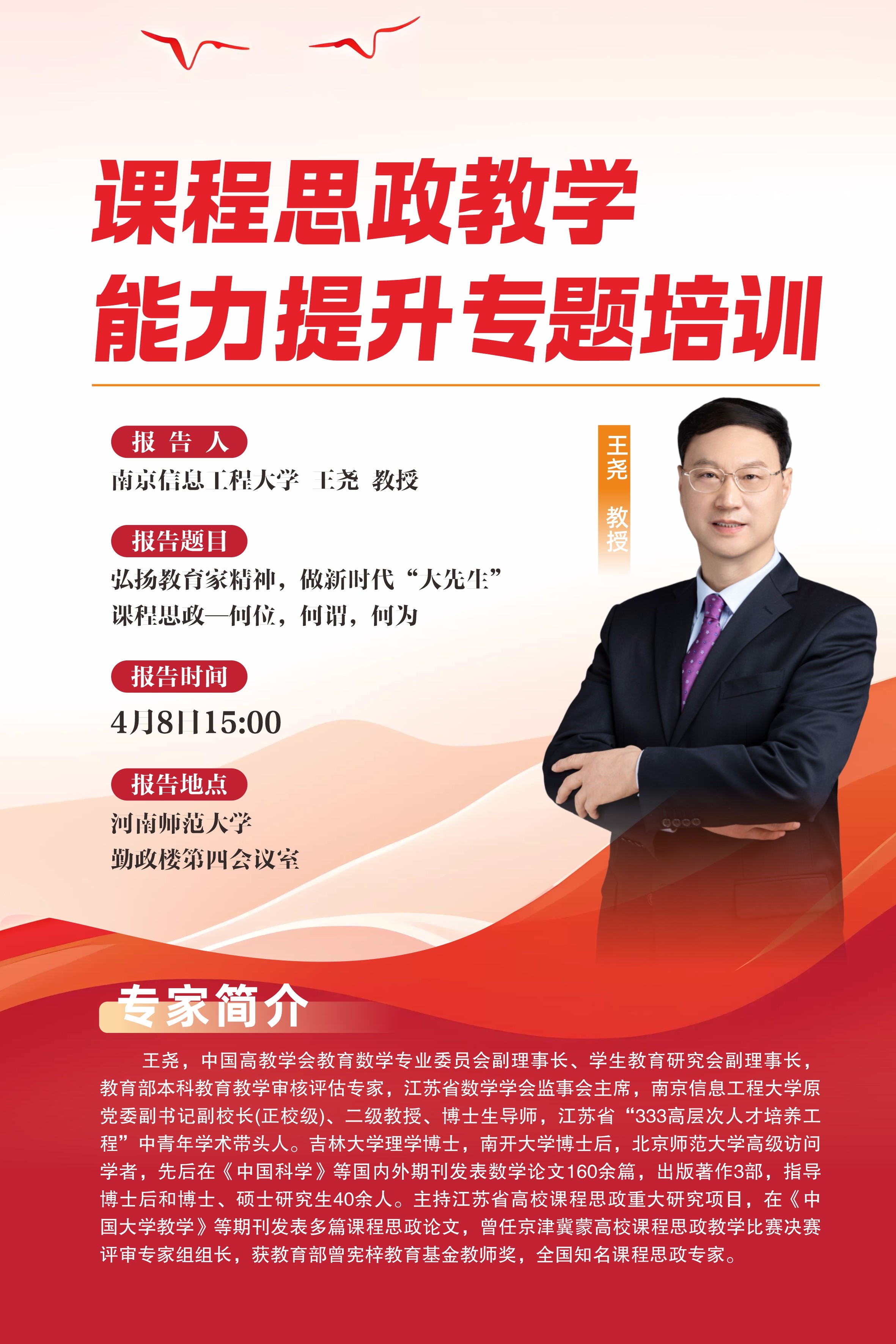 南京信息工程大学王尧教授将应邀到我校作课程思政专题报告