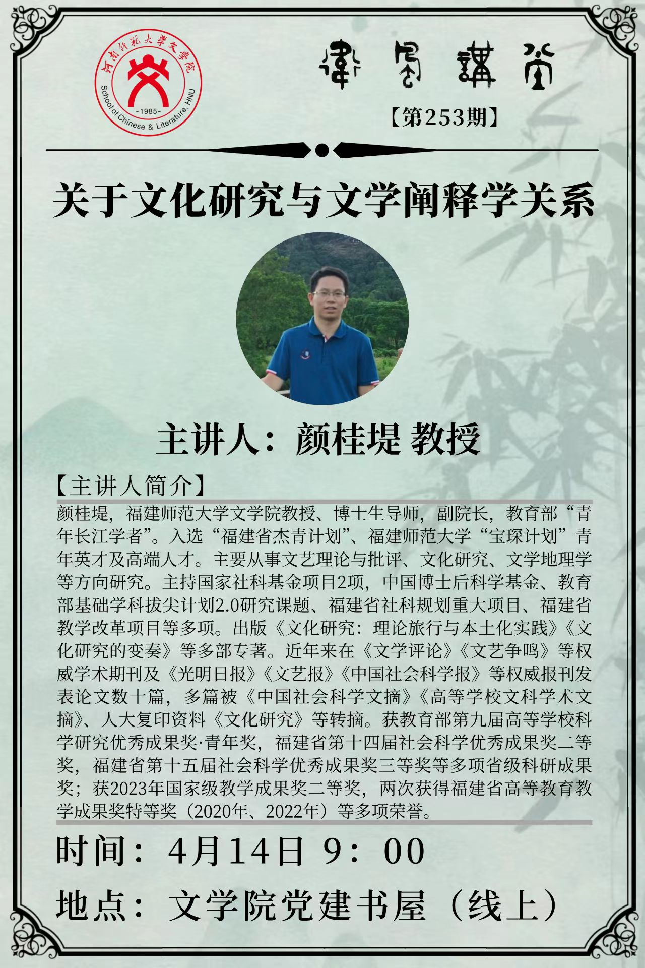 福建师范大学颜桂堤教授将应邀做客“卫风讲堂”