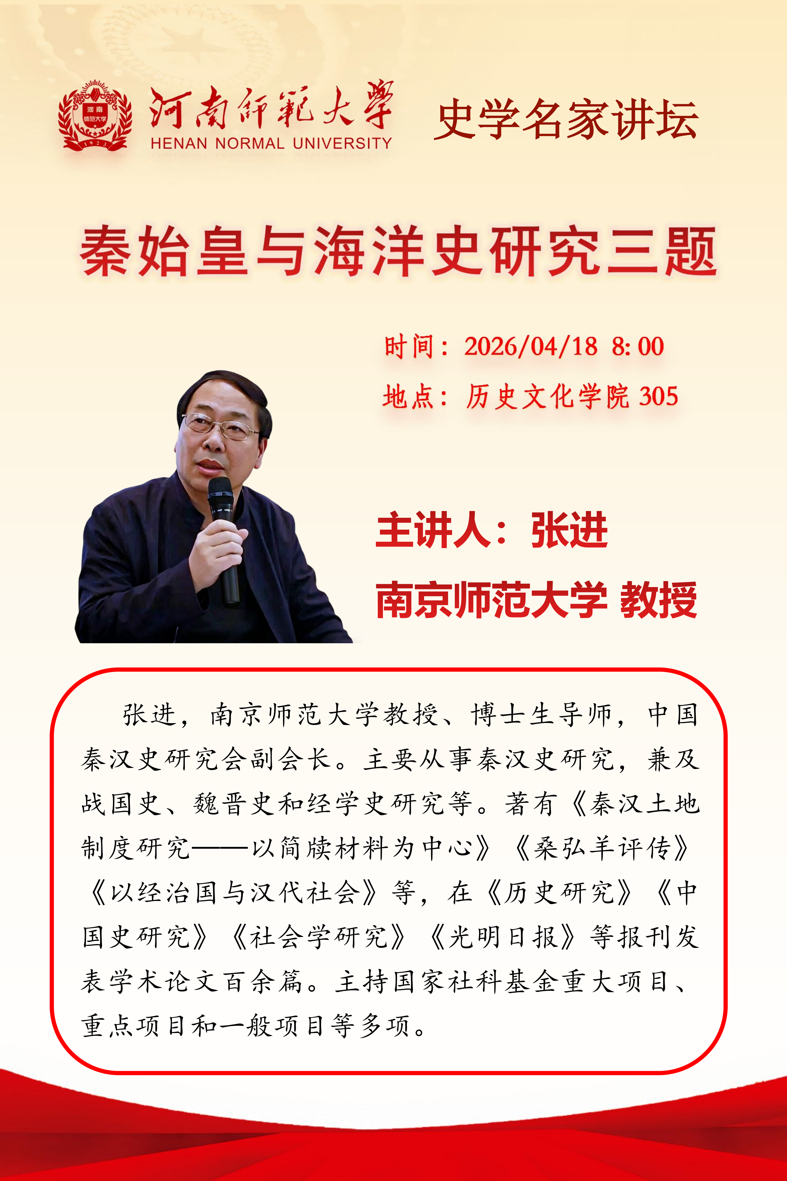 南京师范大学张进教授将应邀做客“史学名家讲坛”