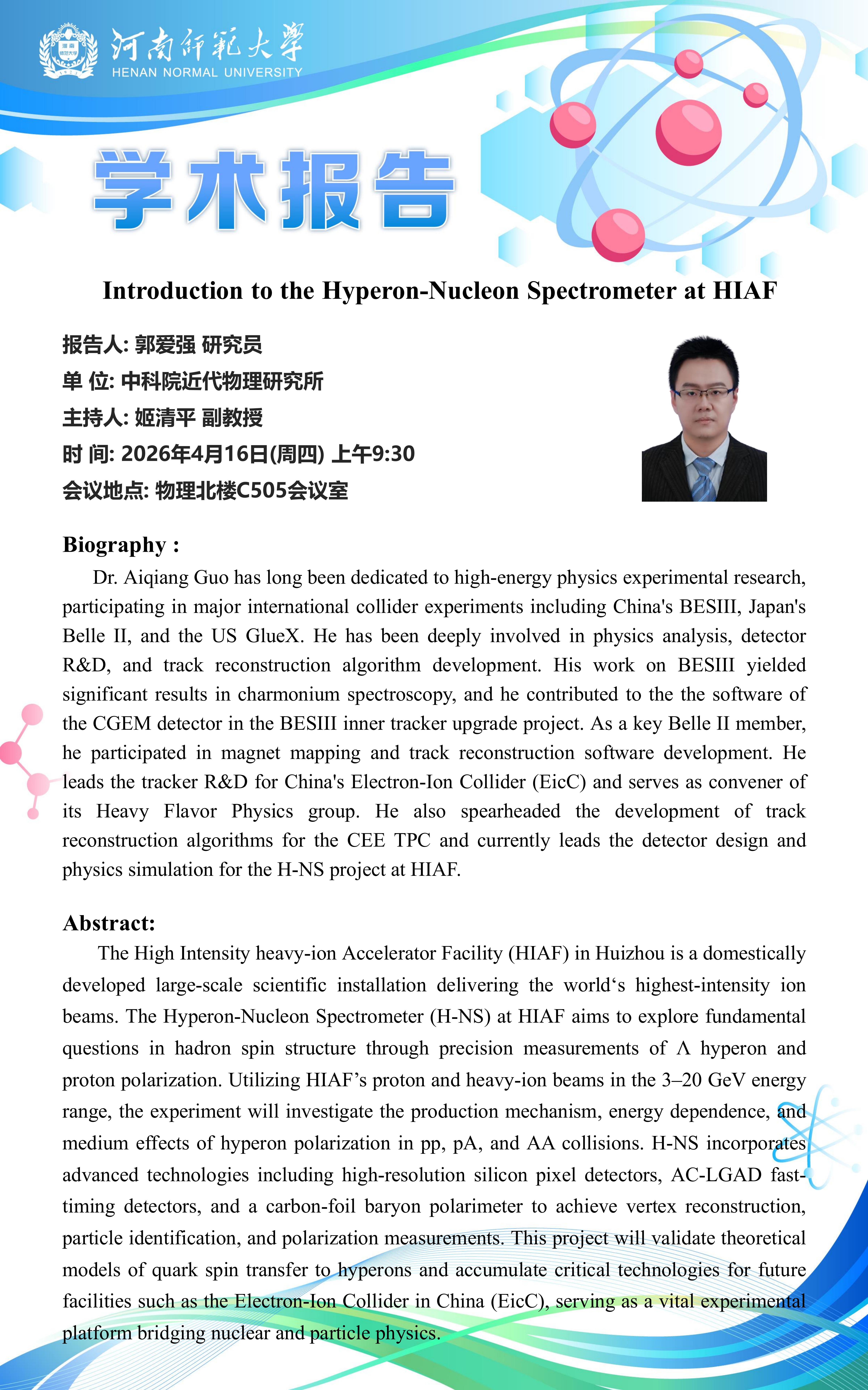 中国科学院近代物理研究所郭爱强研究员将应邀做客“八角楼”讲坛