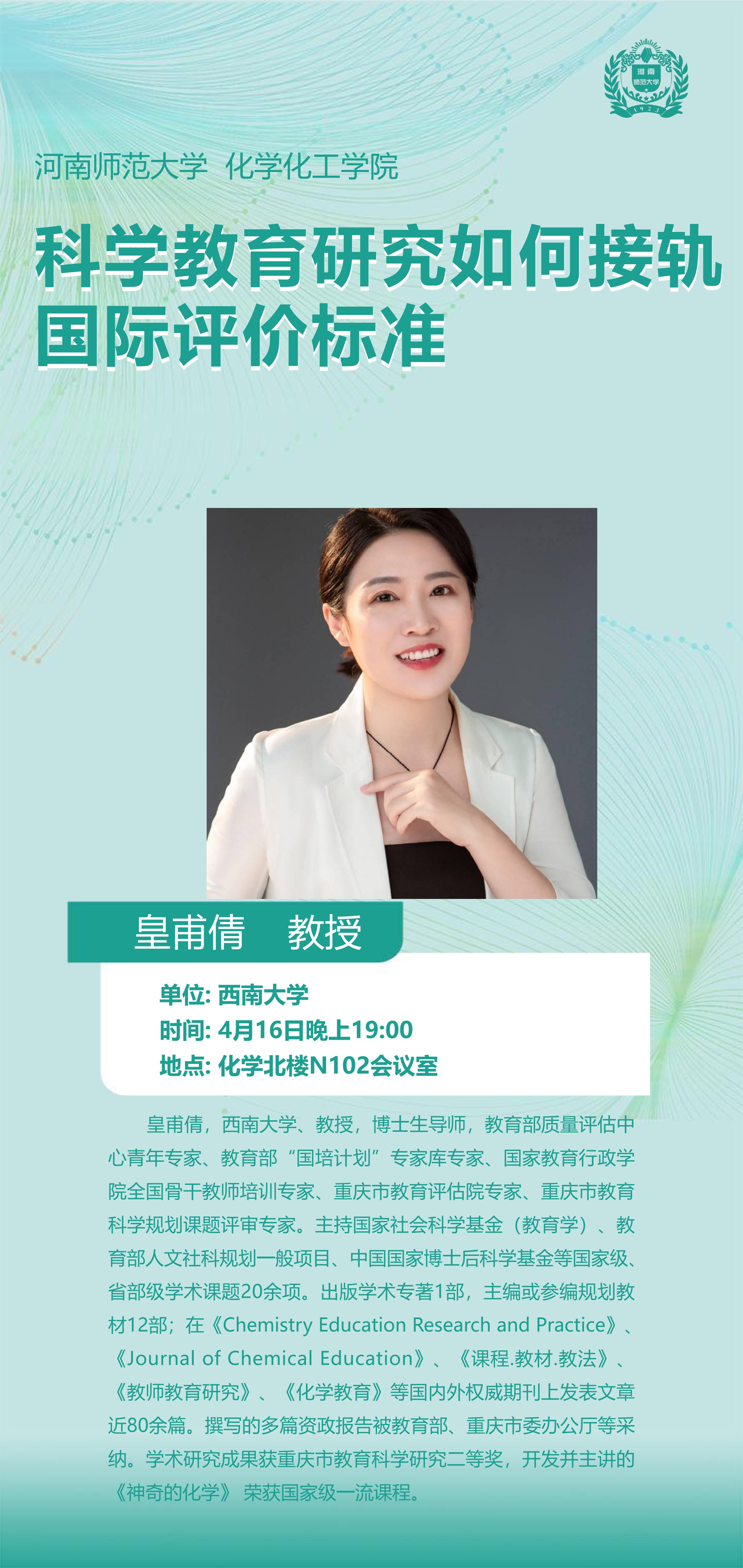 西南大学皇甫倩教授将应邀做客“俊甫讲堂”