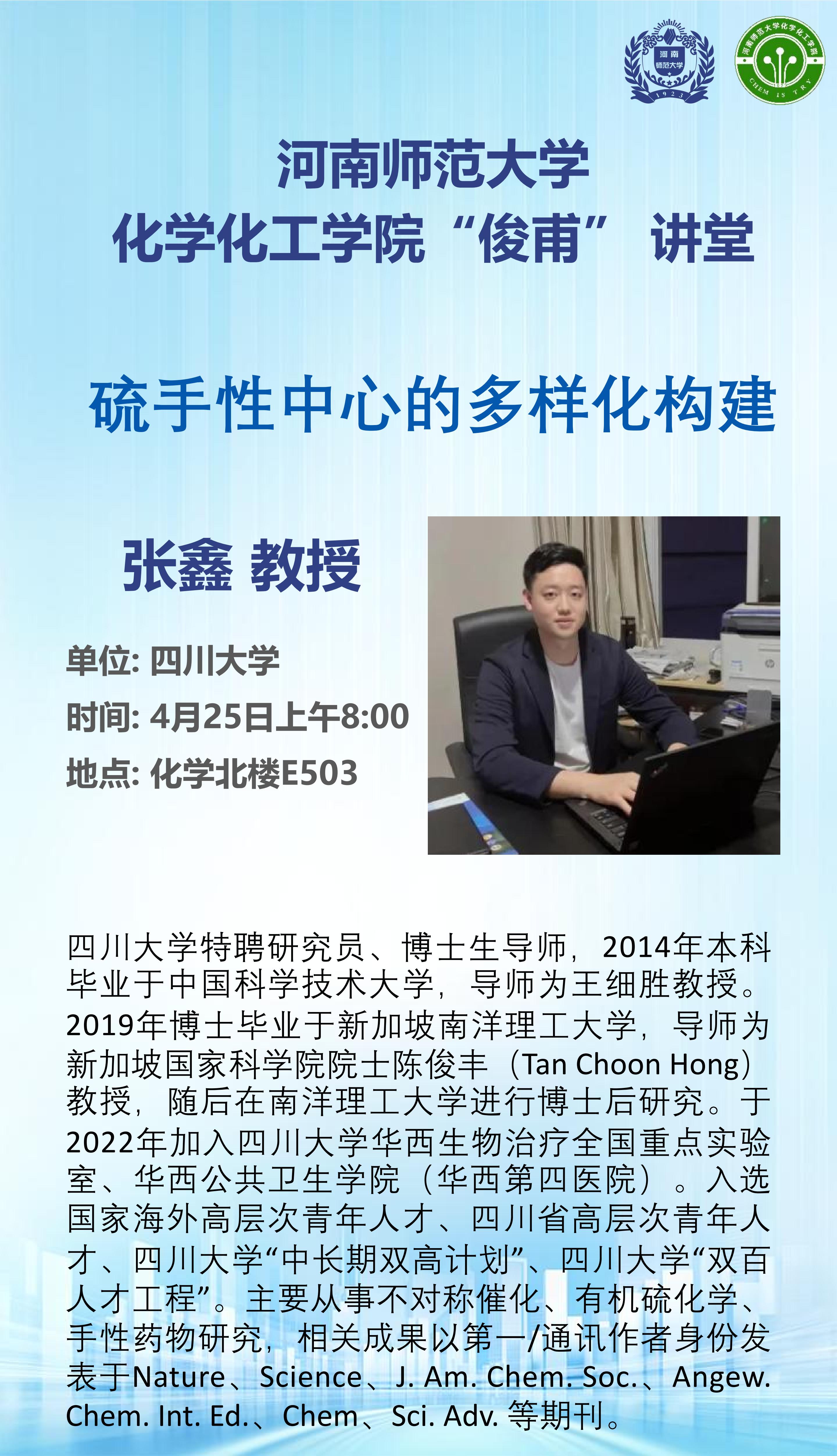 四川大学张鑫教授将应邀做客“俊甫讲堂”