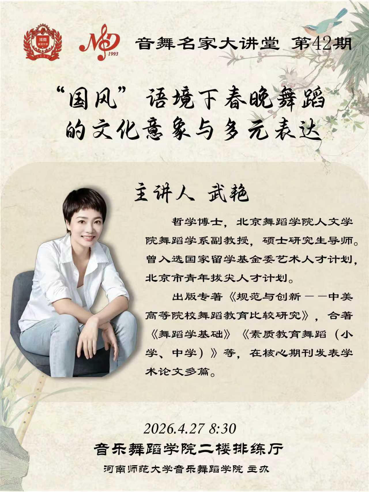 北京舞蹈学院武艳副教授将应邀做客“音舞名家大讲堂”