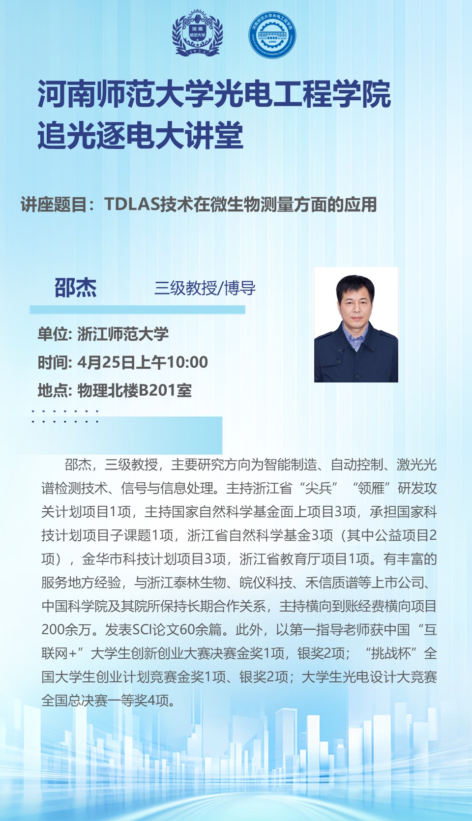浙江师范大学邵杰教授将应邀做客“追光逐电”大讲堂
