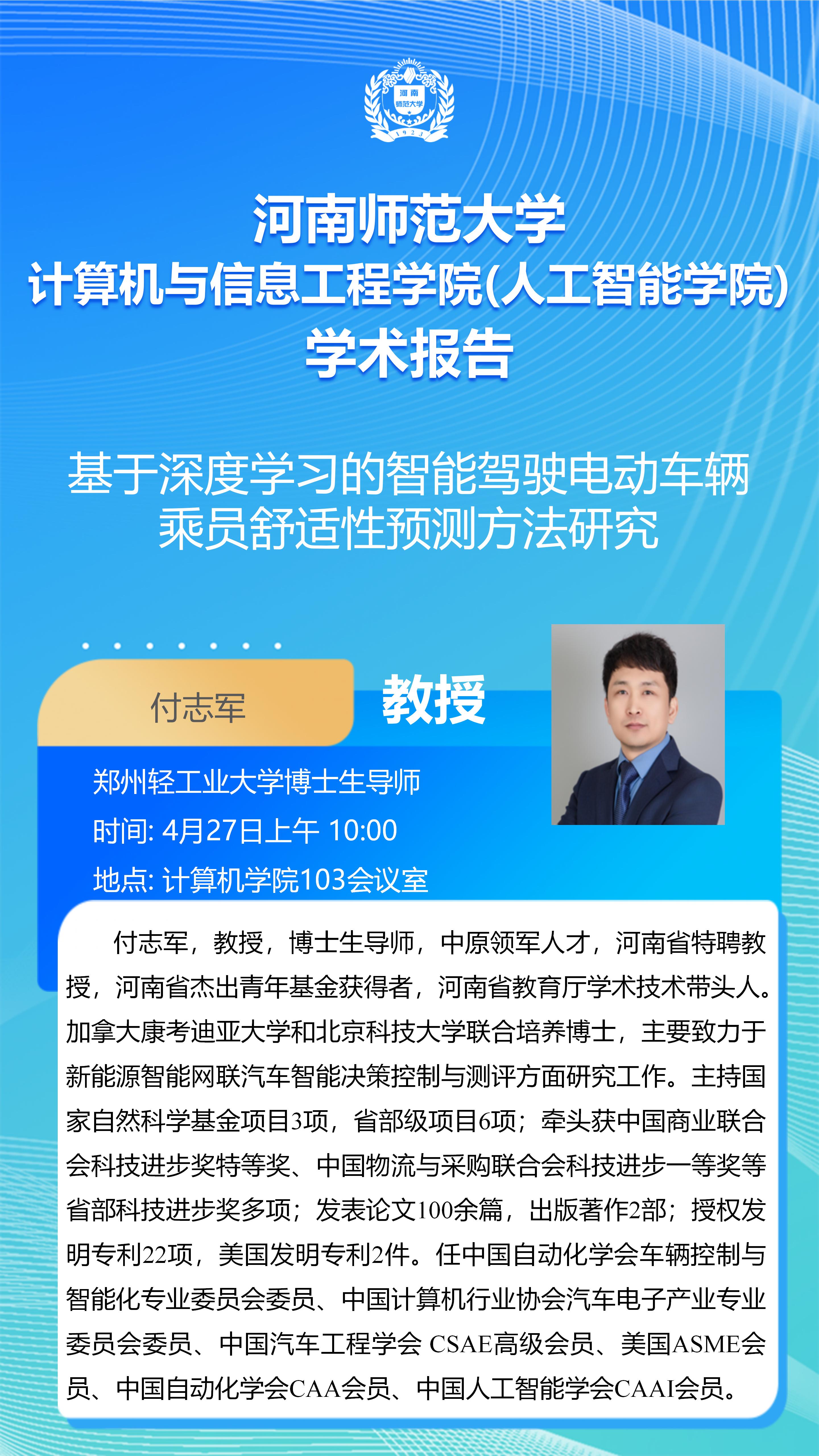 郑州轻工业大学付志军教授将应邀做客“智能科学”讲坛