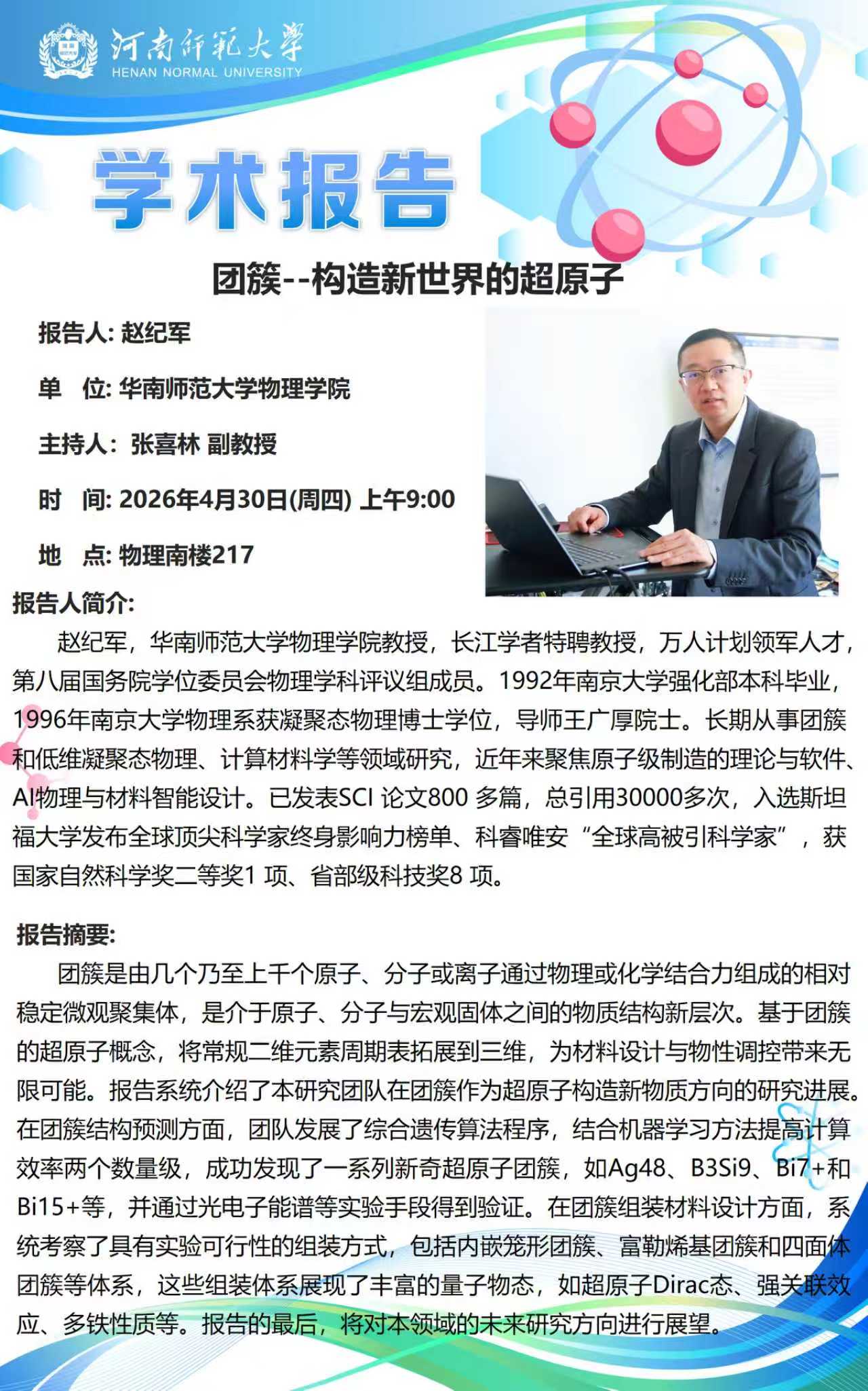 华南师范大学赵纪军教授将应邀做客“八角楼”讲坛